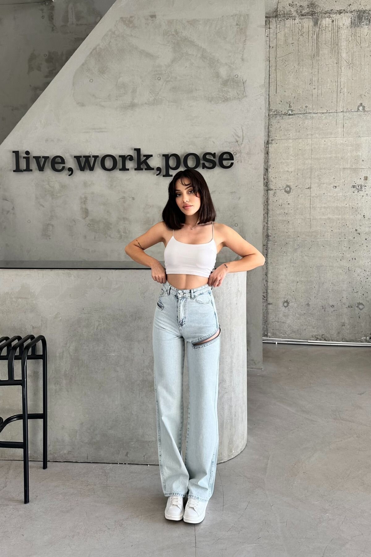 Içden Yırtmaçlı Mom Kalıp Jeans Pantalon